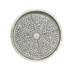 Natural Bone Inlay Tray und Perlmutt Inlay Grau Runde Blätter Design Dekorative Tabletts und Boxen von Huge Range