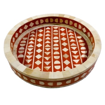 Bone Inlay kunden spezifisches Design Round Red Decorative Tray für Geschirr verwenden Wohnkultur Verwendung von Lametierartz