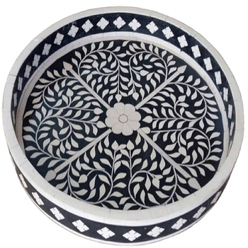 Bone Inlay Wood Handmade Trays Indian Black Bone Inlay Serving Tray Restaurant serving Tray Handcrafted by Indian Artisans