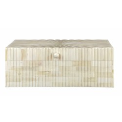 Straight Line Hand Carving Decorative Jewellery Bone and MDF Box White Hand Painted USA Based Design in India by Lametierartz