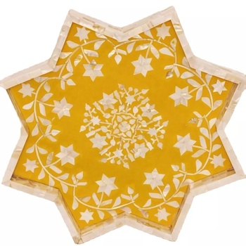 Mango Wooden Serving High Quality Decorative Star Mother of Pearl trays for Many Purposes Indian Trays Decore and Handcraft